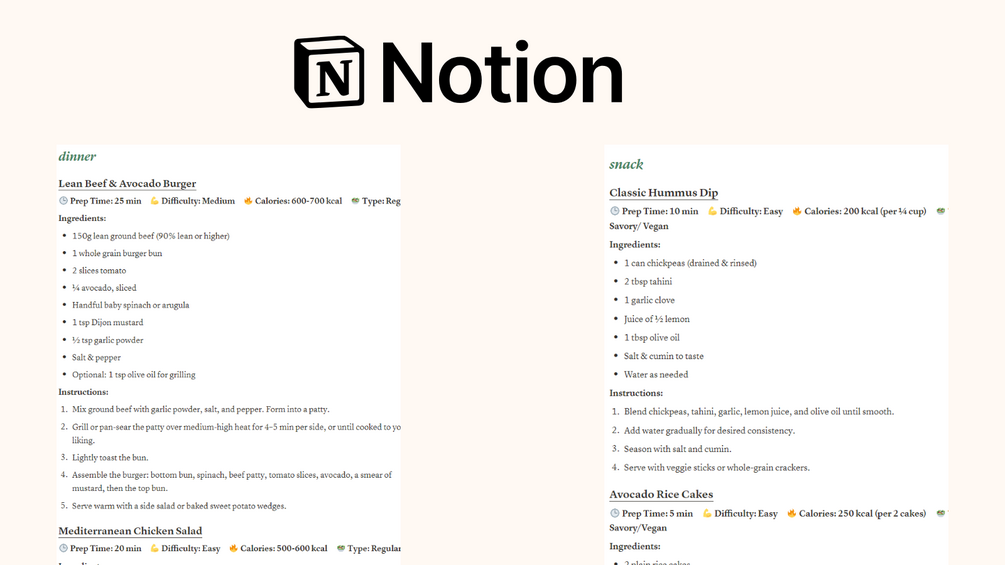 Looking to stay organized, eat better, and reduce mealtime stress? This extended Notion Meal Planner has everything from the original version—plus 72 delicious, mostly healthy recipes to keep your week flavorful and fuss-free!