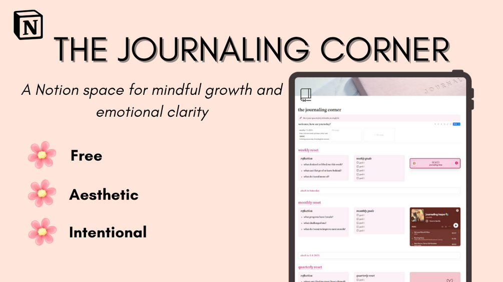 A free, aesthetic Notion template with guided prompts, goal trackers, mental health tools, and everything you need for a mindful reset.